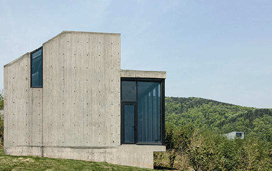土的墙壁,但相对的另一面墙壁全用巨大的落地窗代替,在室内里可以看到全部的外景;背对着